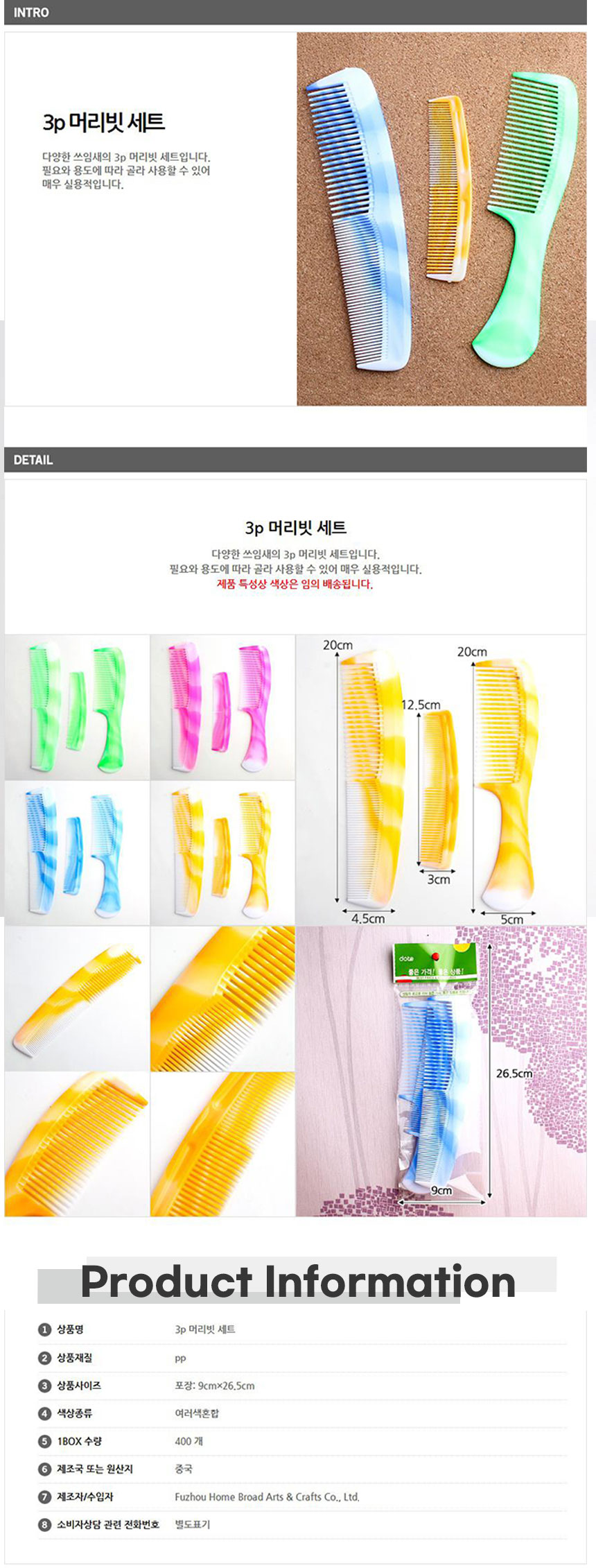 컬러 원웨이 빗 - D