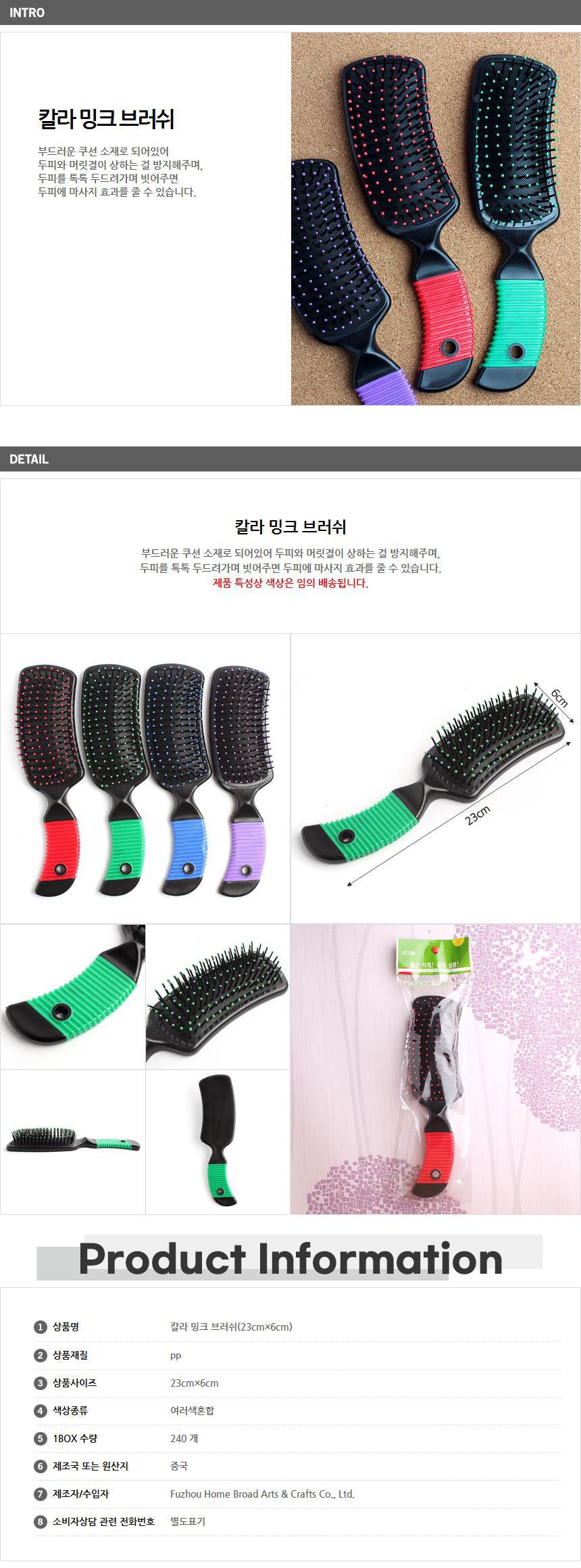 선명한 컬러 쿠션브러쉬-색상랜덤x10개 여성빗 학생빗 이미지/