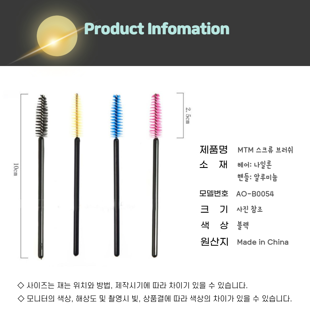 1. 품명 및 모델명 : 속눈썹 연장 스크류 브러쉬 빗 마스카라 땅콩브러쉬 아이브러쉬 미니눈썹빗 50개