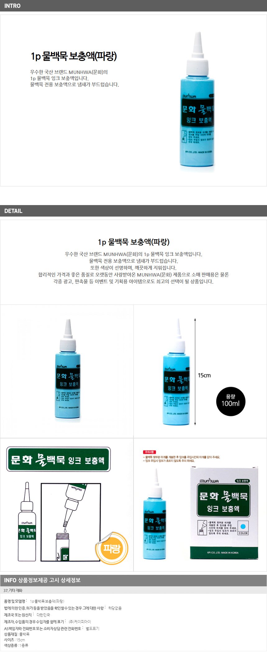 문화 물백묵 잉크 보충액 (1p 리필용 파랑) 이미지/