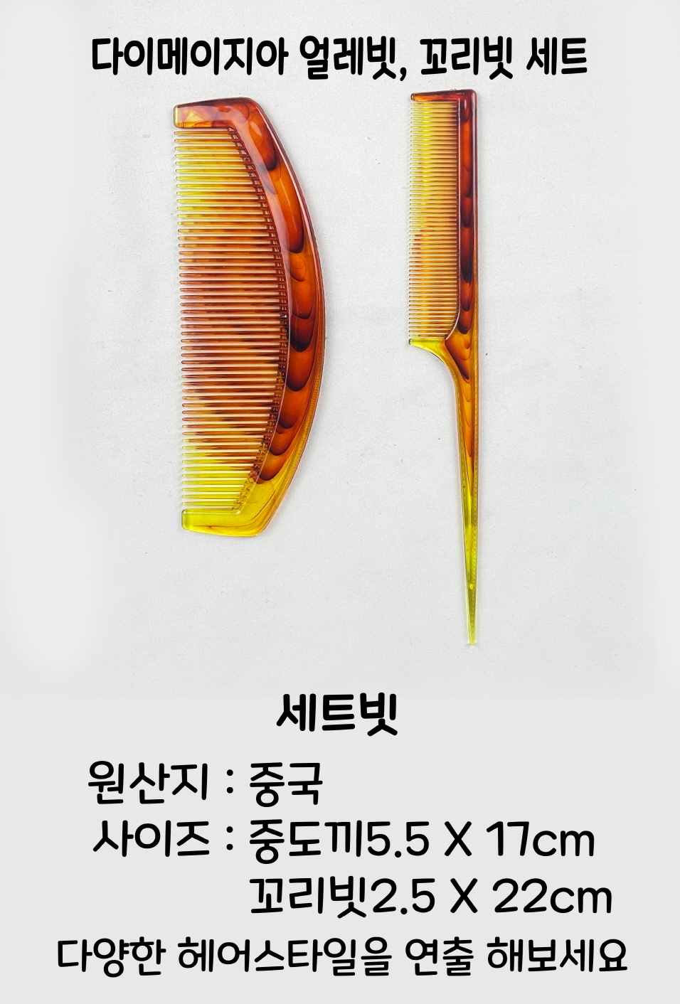 고급 아크릴 얼레빗 +꼬리빗 세트 - D 이미지/