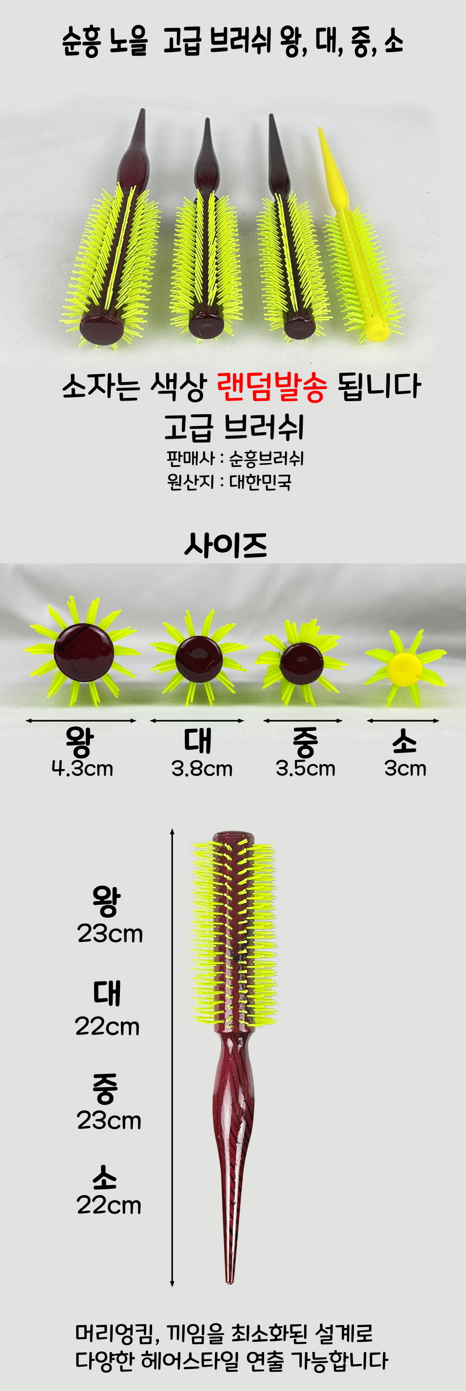 모델명 헤어 드라이 브러쉬 노을 (소, 중,