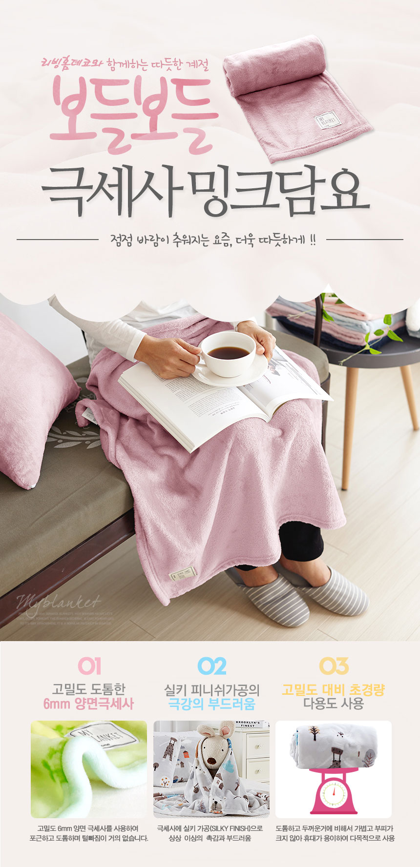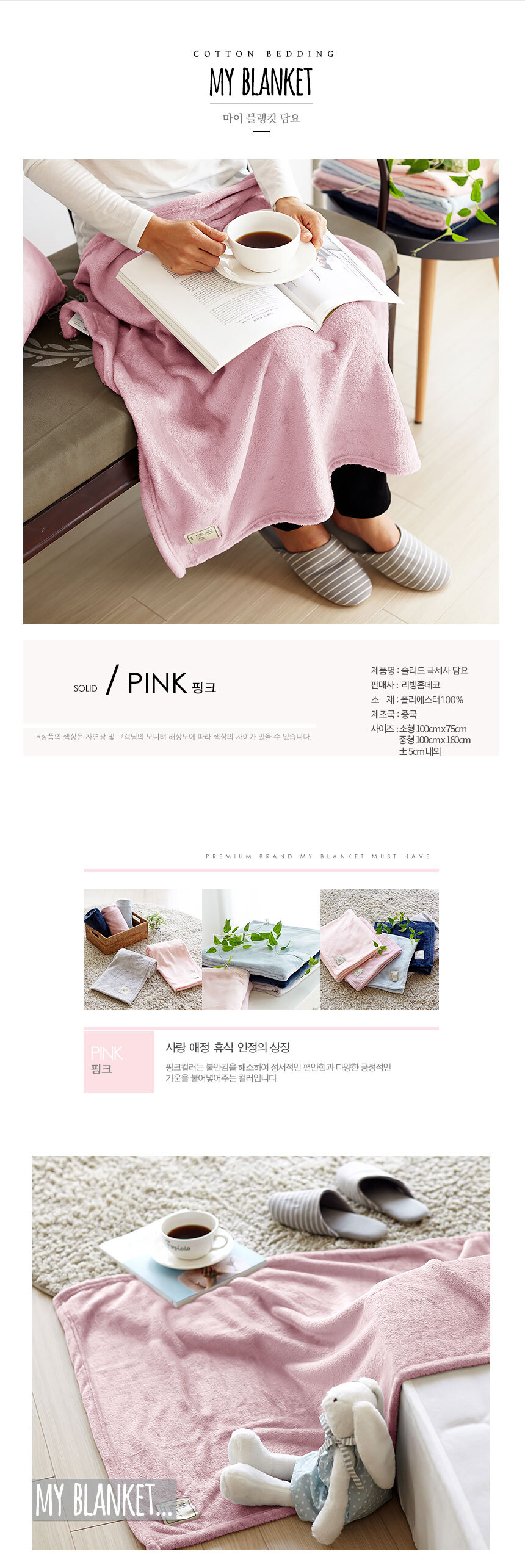 극세사밍크담요 솔리드 소형 100x75 핑크/이불 양털