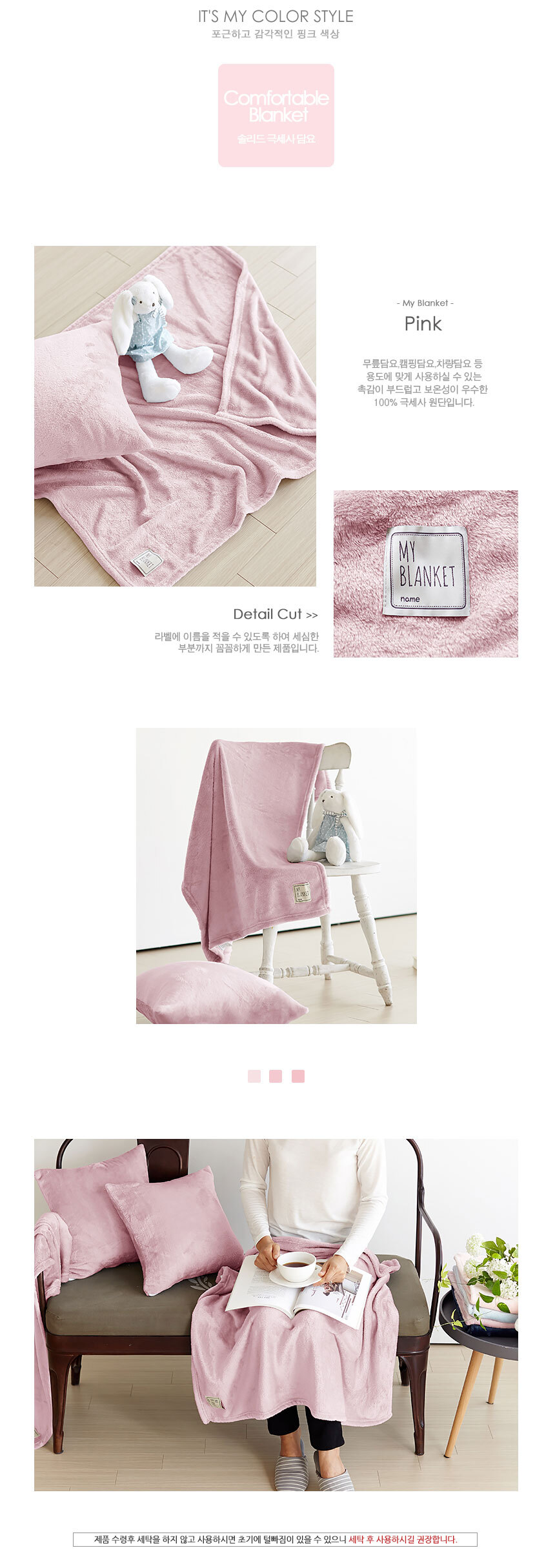 극세사밍크담요 솔리드 소형 100x75 핑크/이불 양털 이미지/