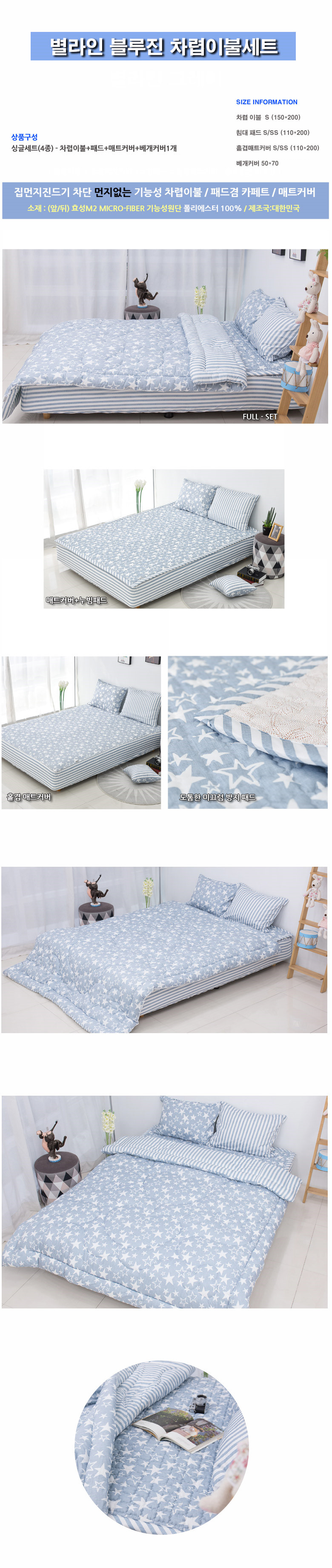 <상품명 : 별라인 블루진 차렵이불세트 싱글S 4종세트>