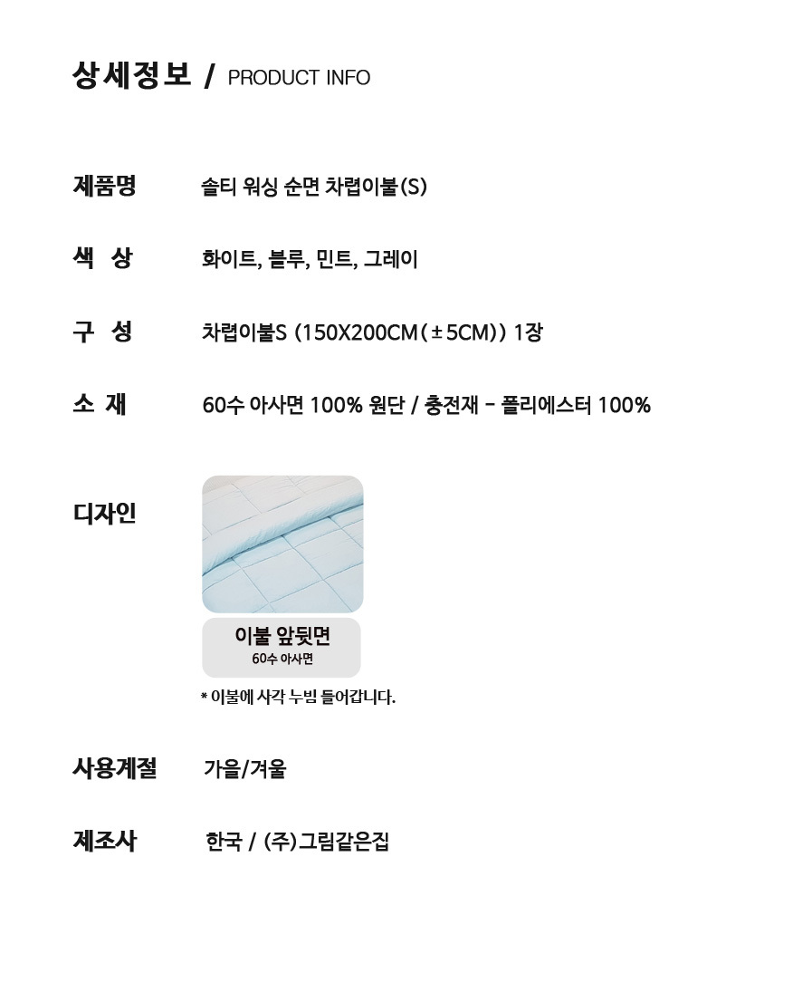 솔티 60수 가을/겨울 순면 차렵이불 S 이미지/