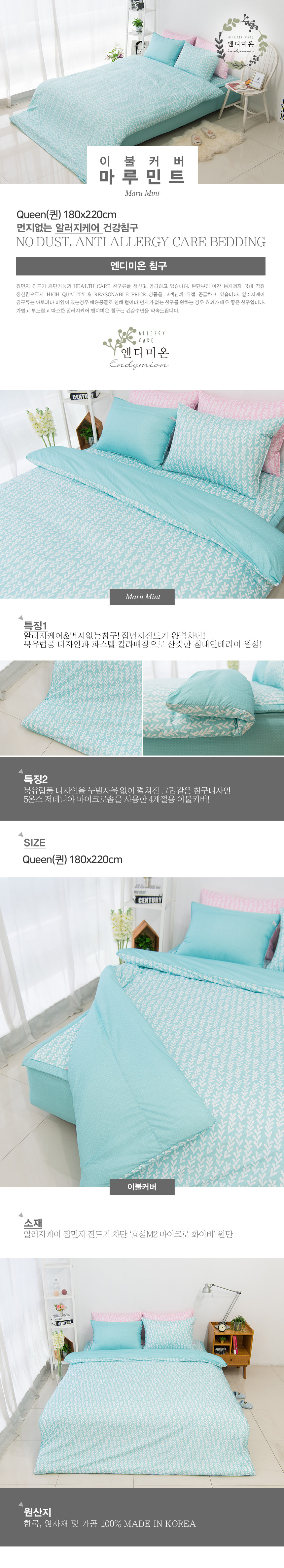 마루(Maru) 민트 누빔이불커버 알러지케어 북유럽풍 퀸(180-220cm) [먼지없는침구 이미지/