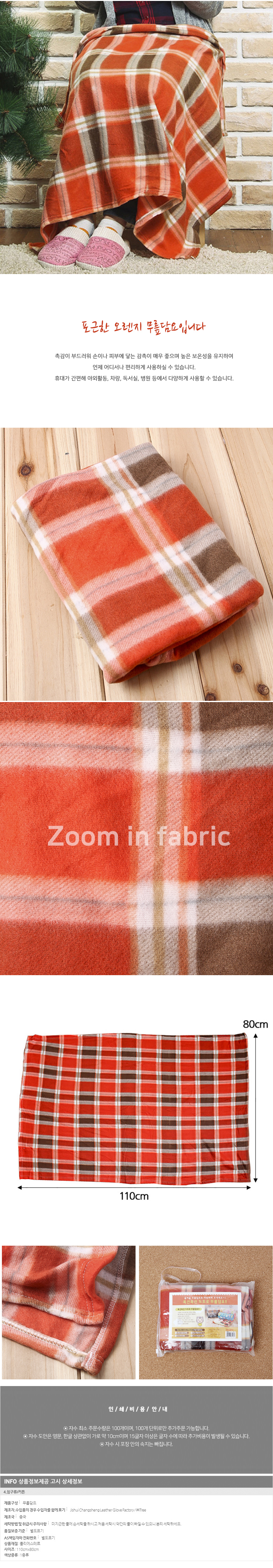 1. 제품소재 : 포근한 오렌지 무릎담요 (110cm/132g