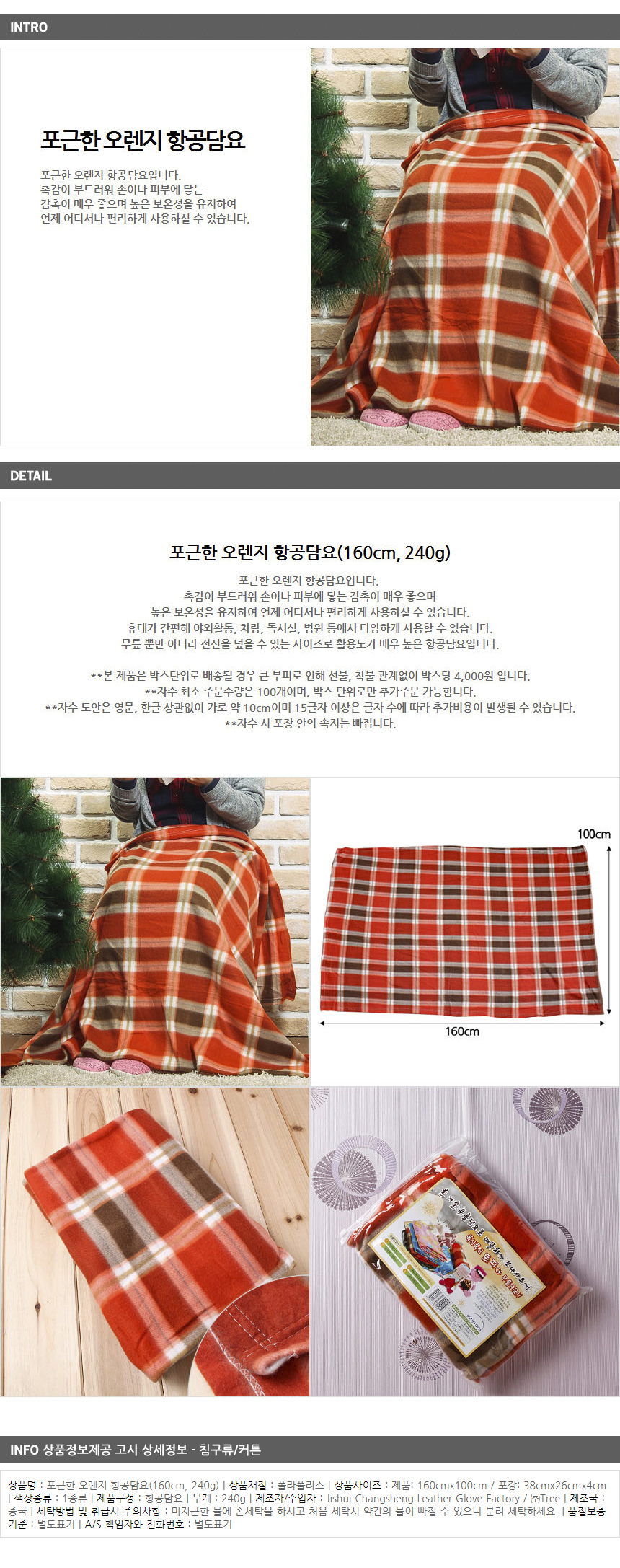포근한 오렌지 항공담요(160cm 240g) 이미지/