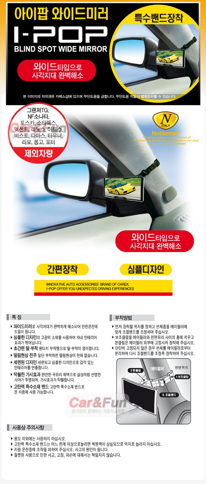 A필러 고정 밴드 차량 용품 운전 와이드 보조 미러 차량실내용품 자동차룸미러