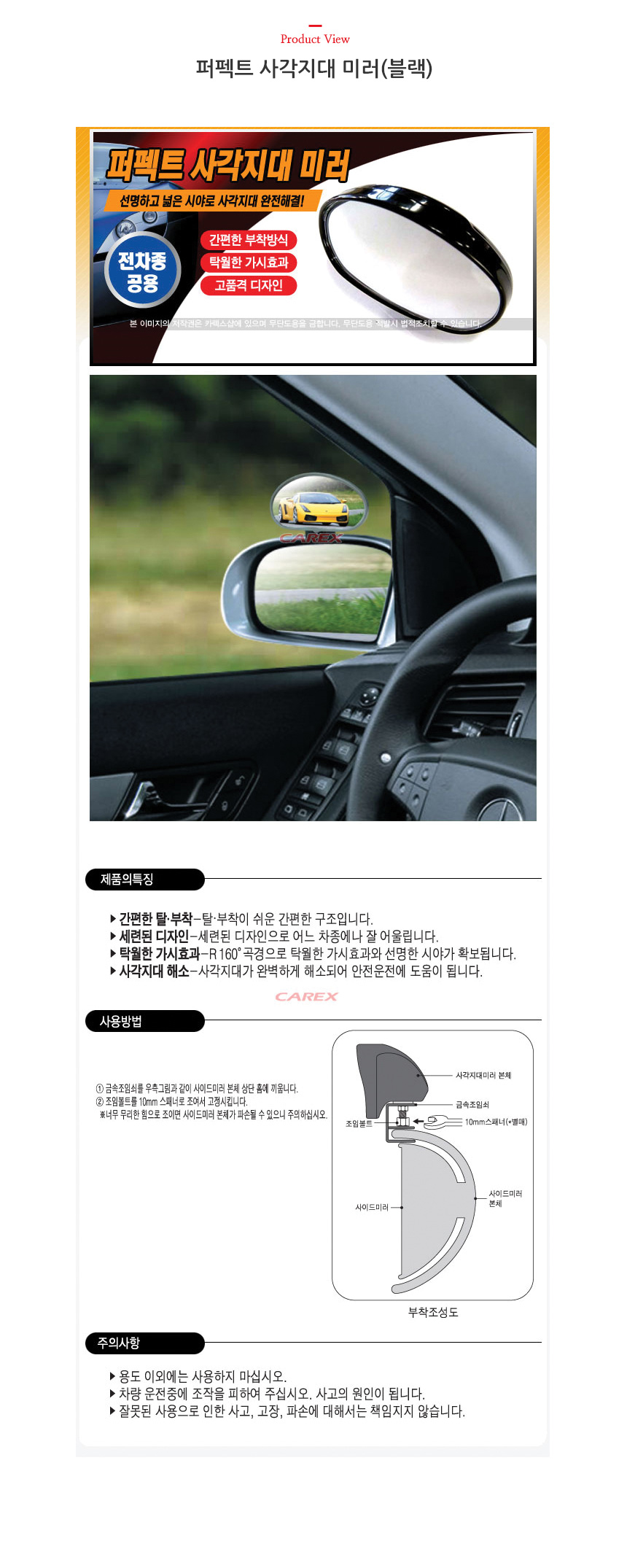 퍼펙트 시각지대 미러(블랙) 6418 이미지/