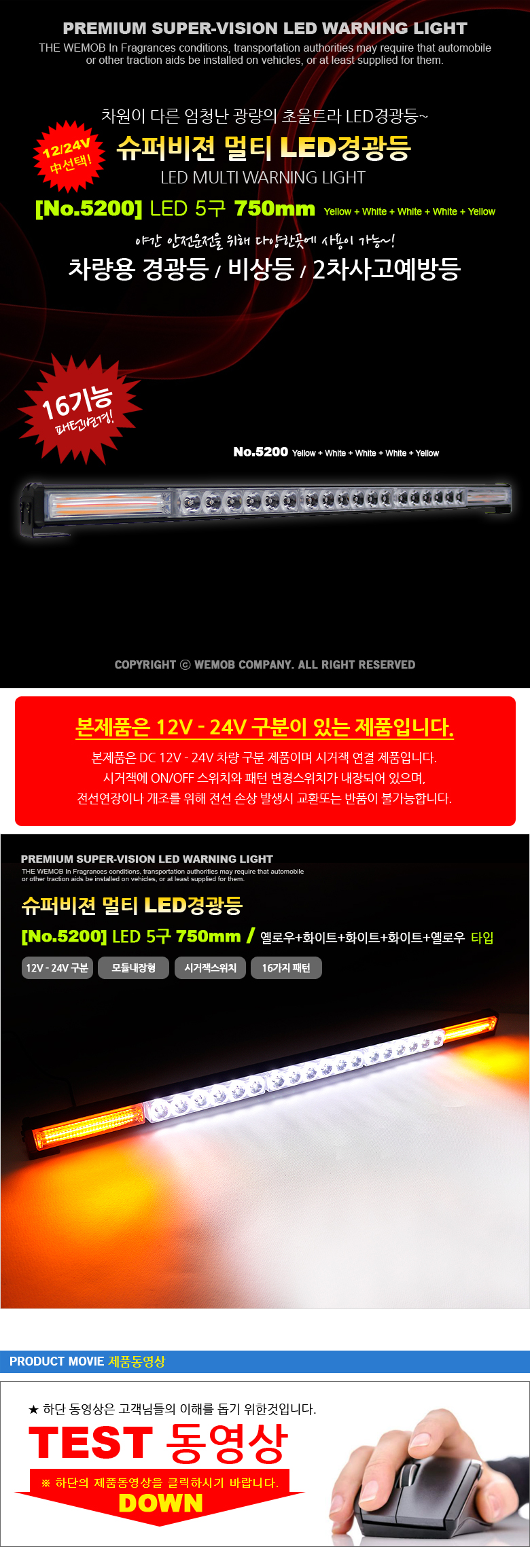 WMB 차량용 LED바 5구 경광등 비상등 사고예방 조명