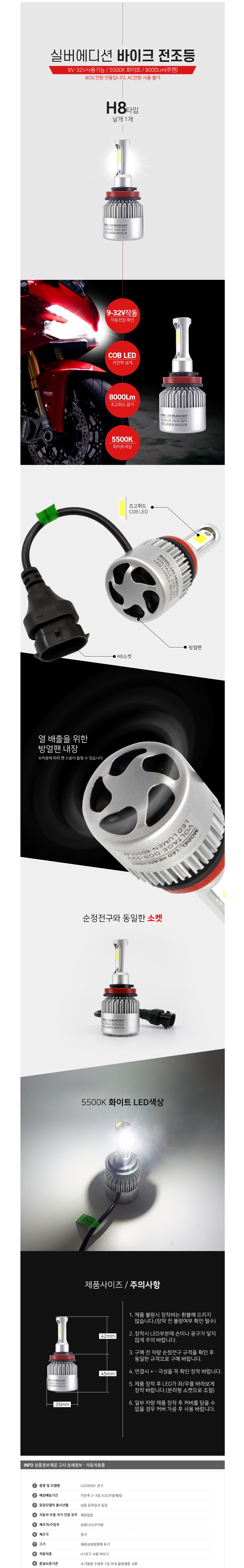 H8 순정소켓형 오토바이 LED전조등 실버에디션 이미지/