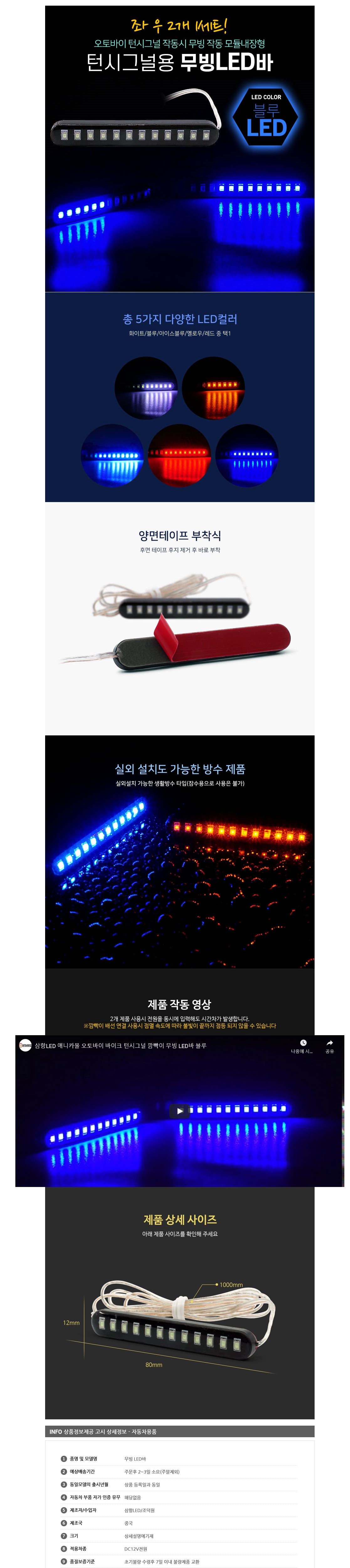 12V 모듈내장형 턴시그널 오토바이 무빙LED바 블루 2P 바이크깜빡이 이미지/