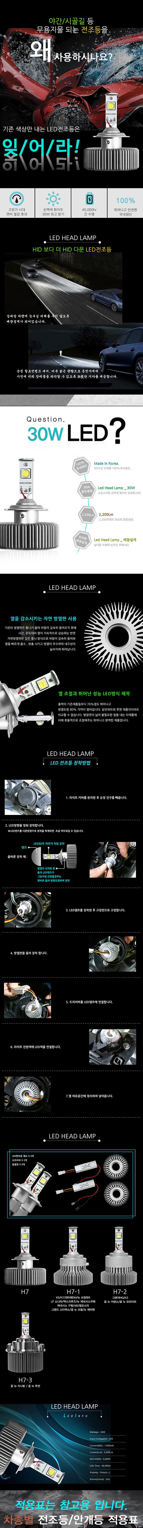 12V전용 H7타입 웰라이트 LED전조등 2개 1세트 순정소켓형 30W H7타입 이미지/