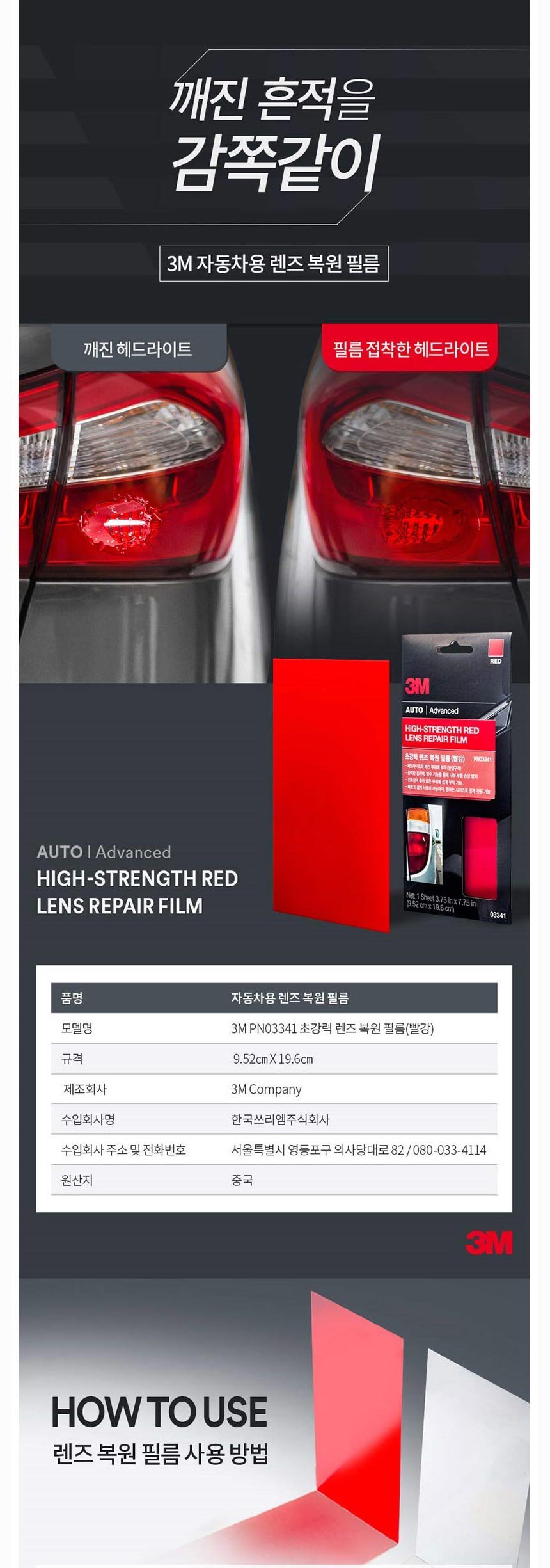 3M 초강력 렌즈 복원 필름빨강 PN03341