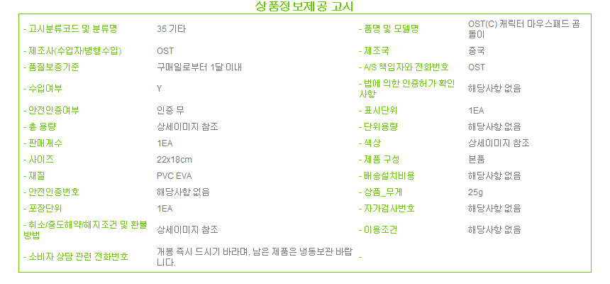 수입자 상품상세설명에 표기