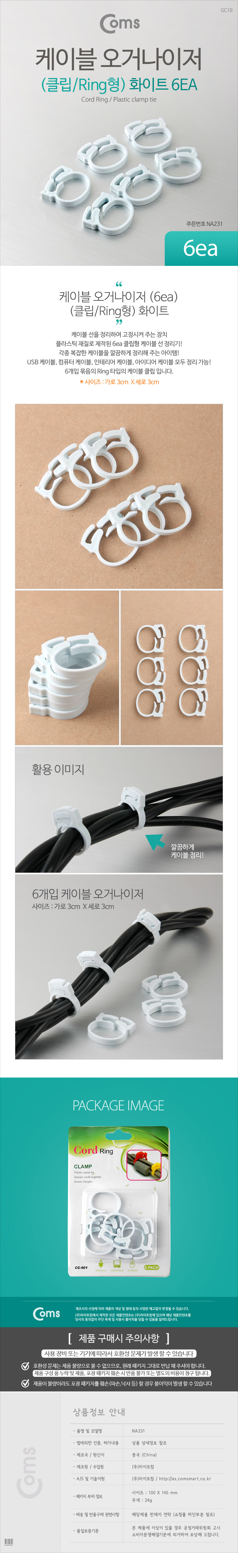 케이블 오거나이저(클립/Ring형) 6ea 화이트 이미지/