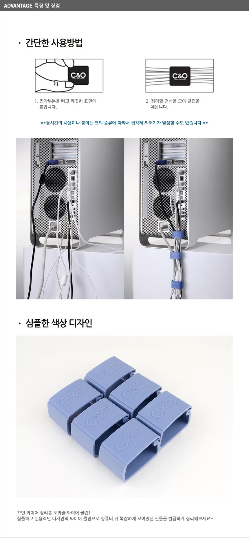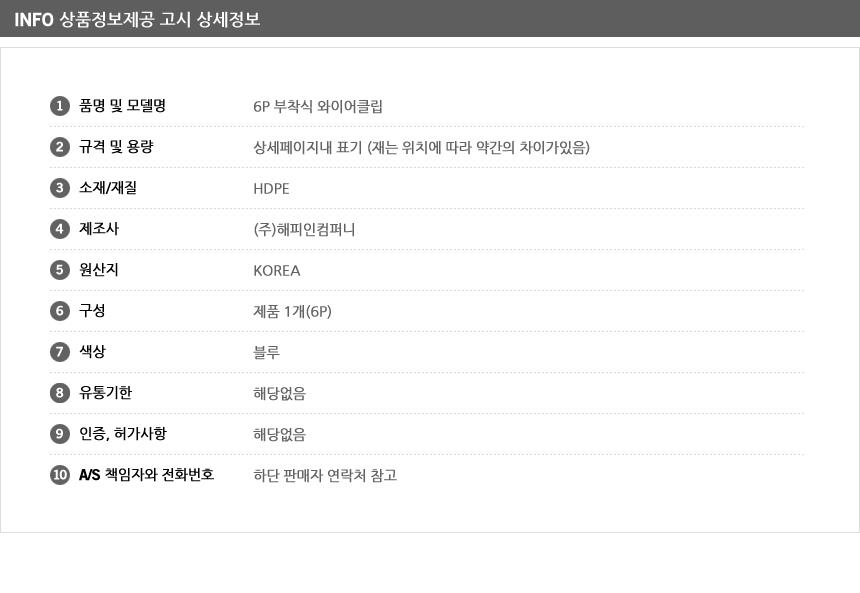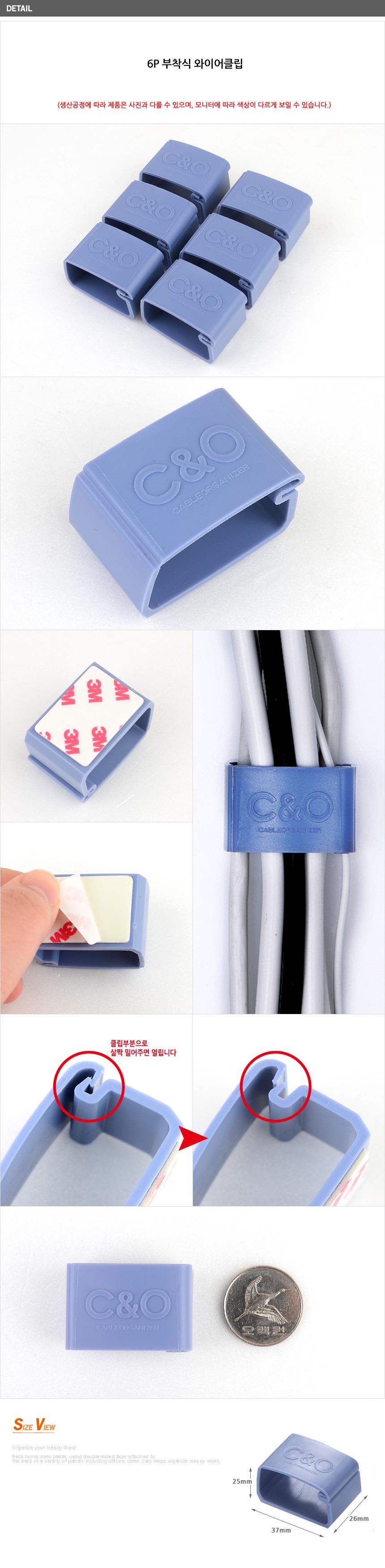 6P 부착식 와이어클립 깔끔하고편리 배선정리 사무실 이미지/