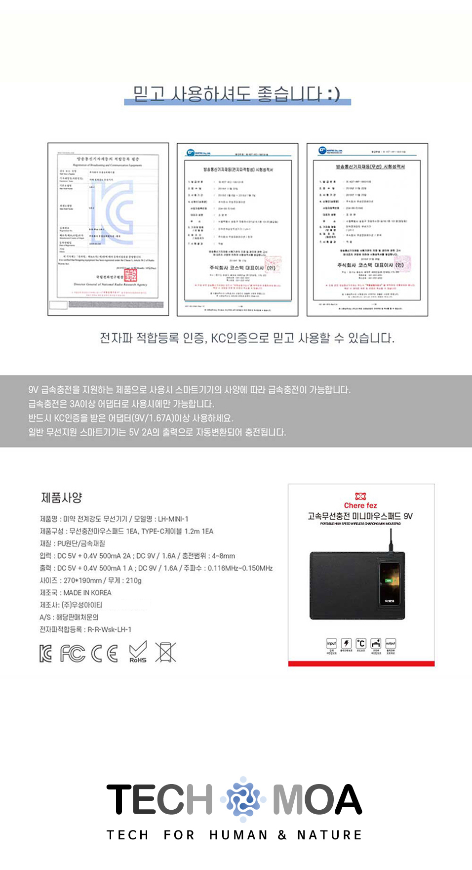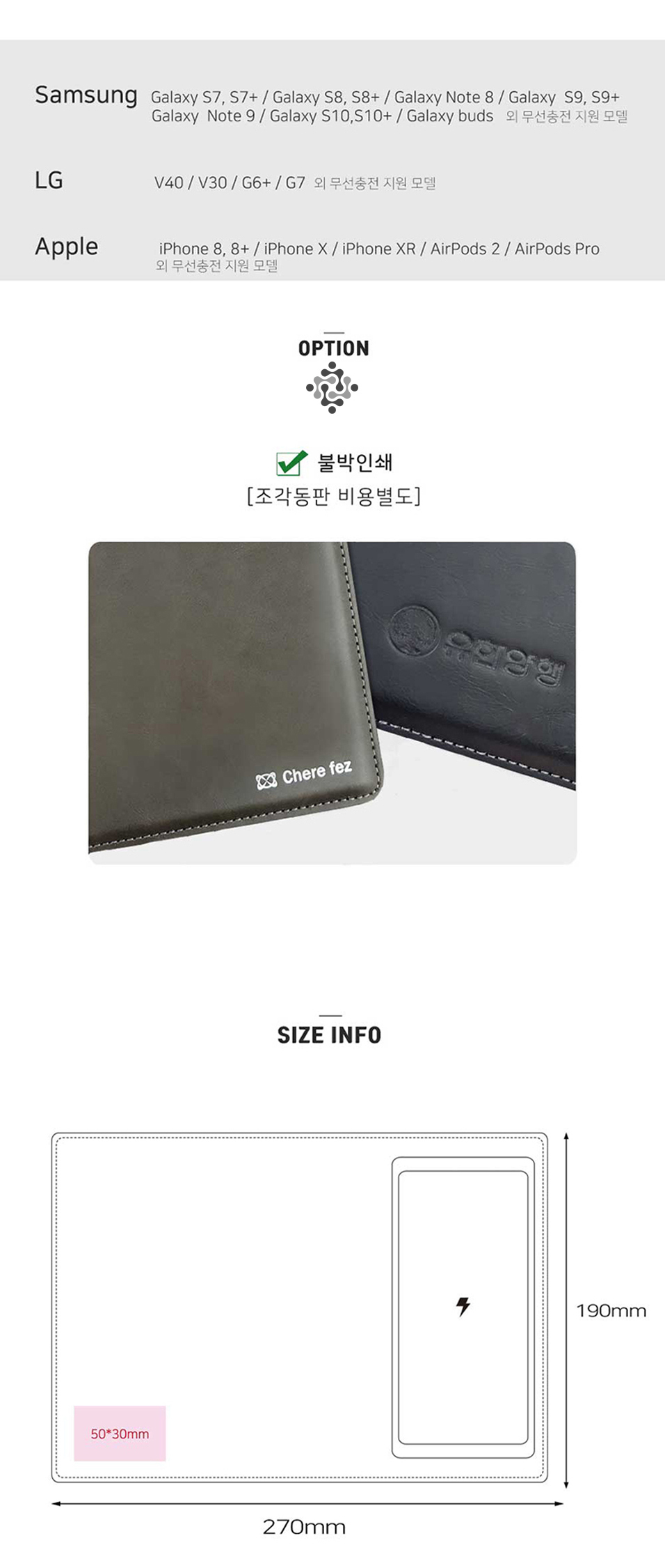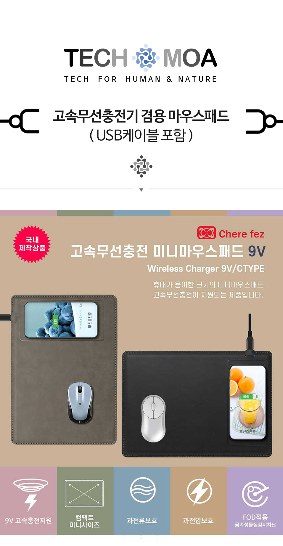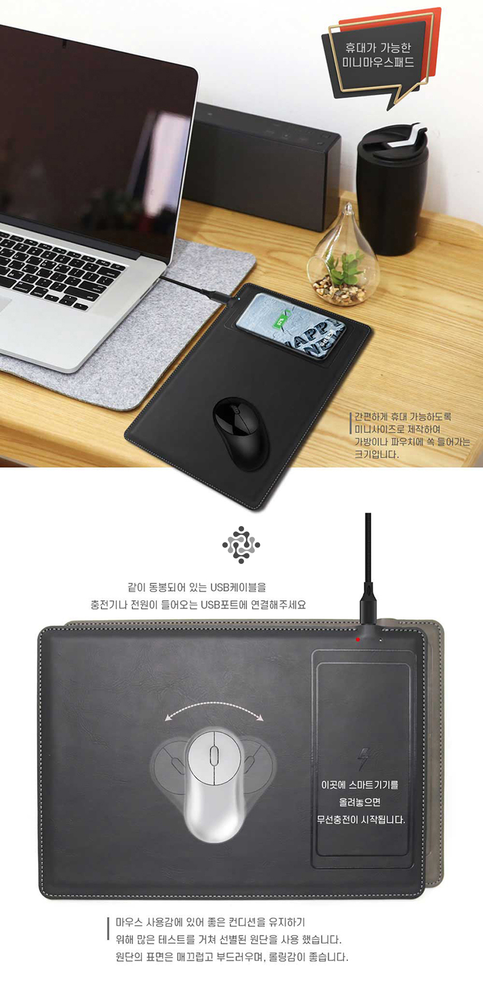 고속 무선충전 겸용 마우스패드 USB케이블 포함