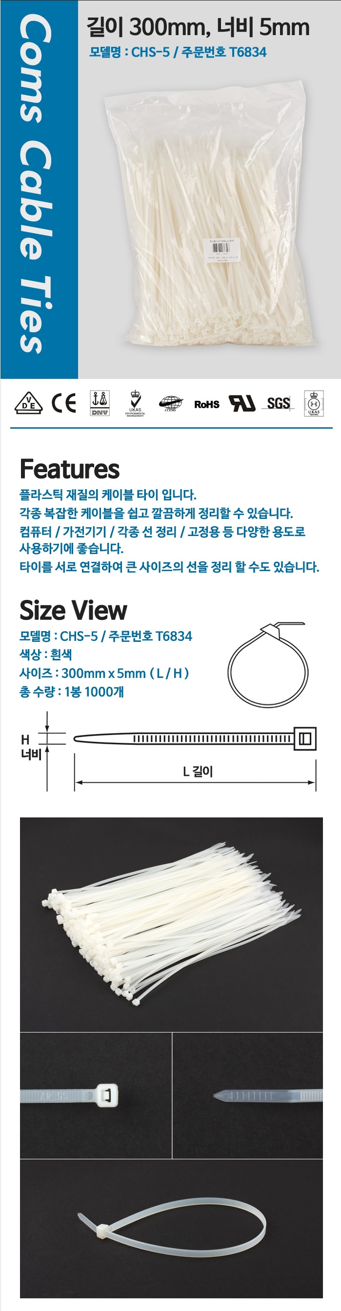 케이블 타이 300mm x 5mm 1000pcs 이미지/