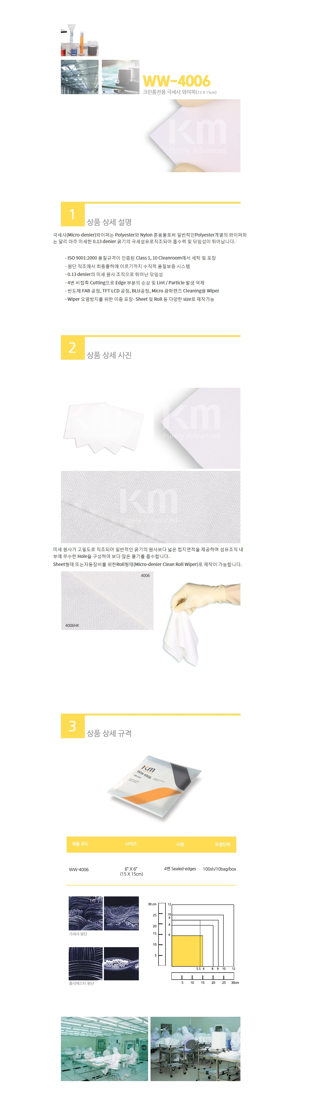 KM 극세사 와이퍼 15x15cm WW-4006 1Box (10팩) 크린룸 이미지/