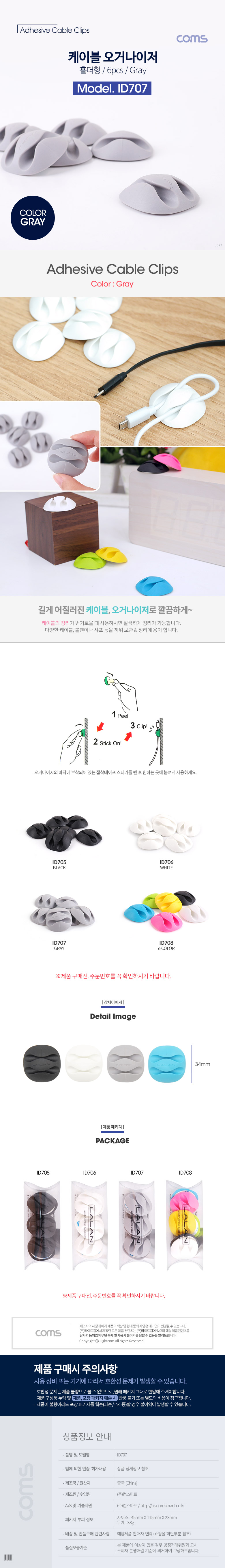 케이블 오거나이저(홀더형/6pcs) Gray 이미지/