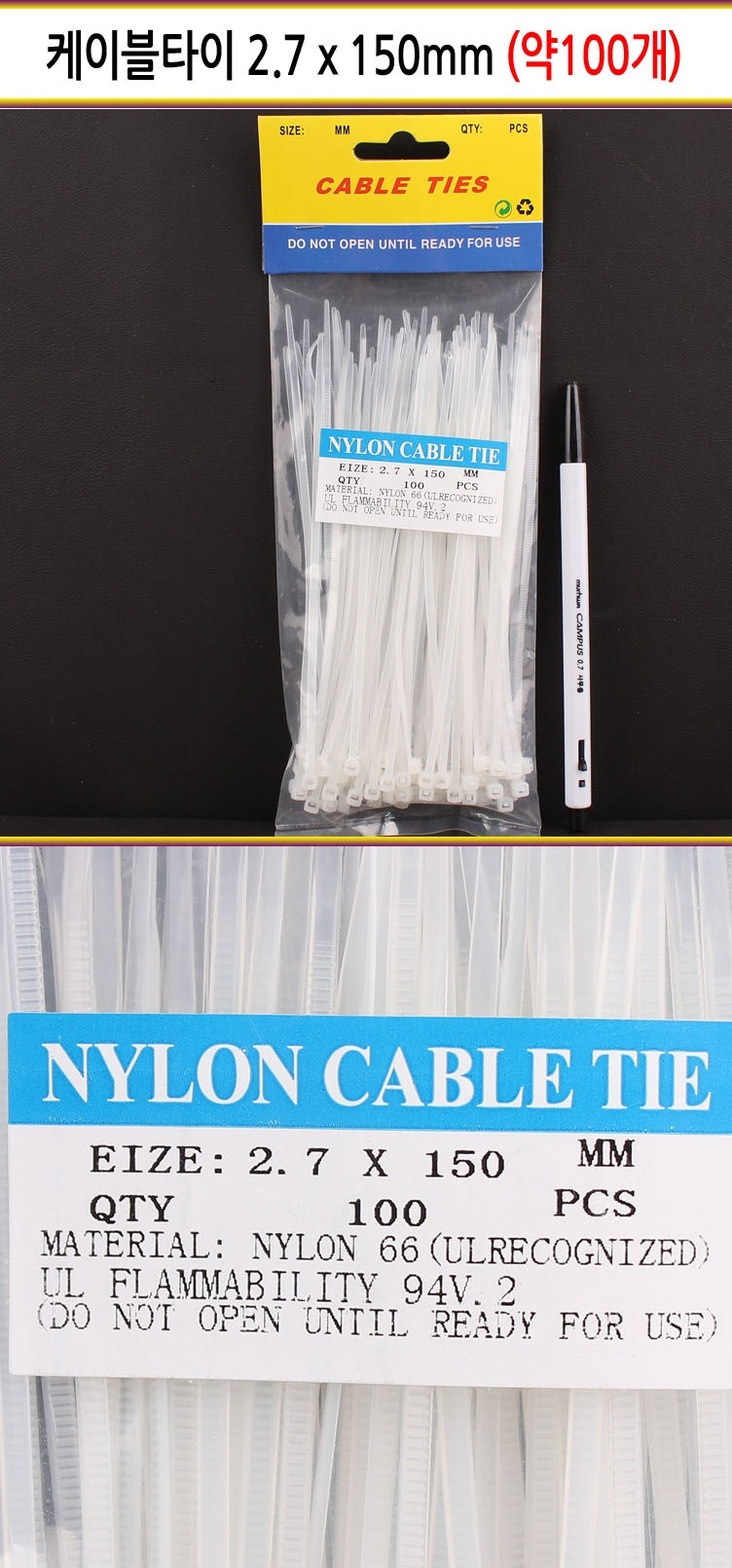 케이블타이 2.7 x 150mm 100개 이미지/