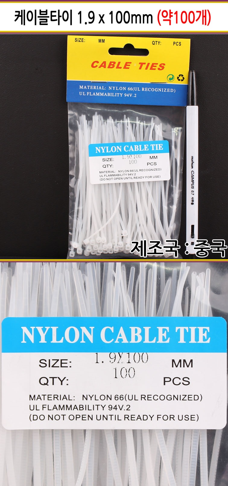 케이블타이 1.9 x 100mm 100개 이미지/