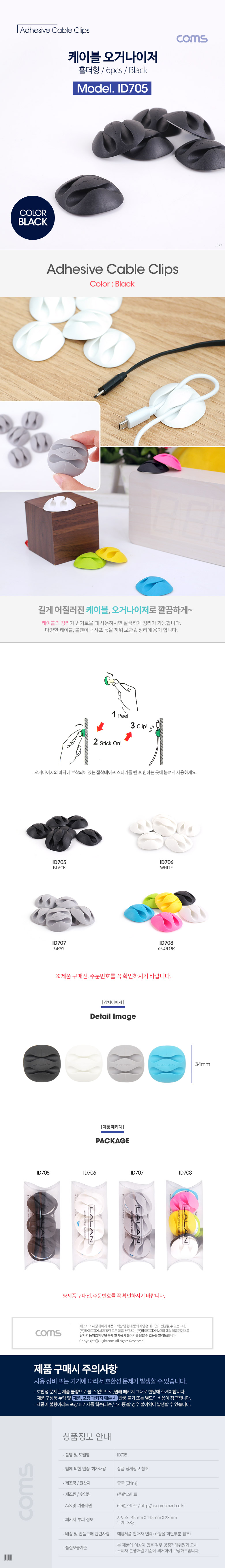 케이블 오거나이저(홀더형/6pcs) Black 이미지/