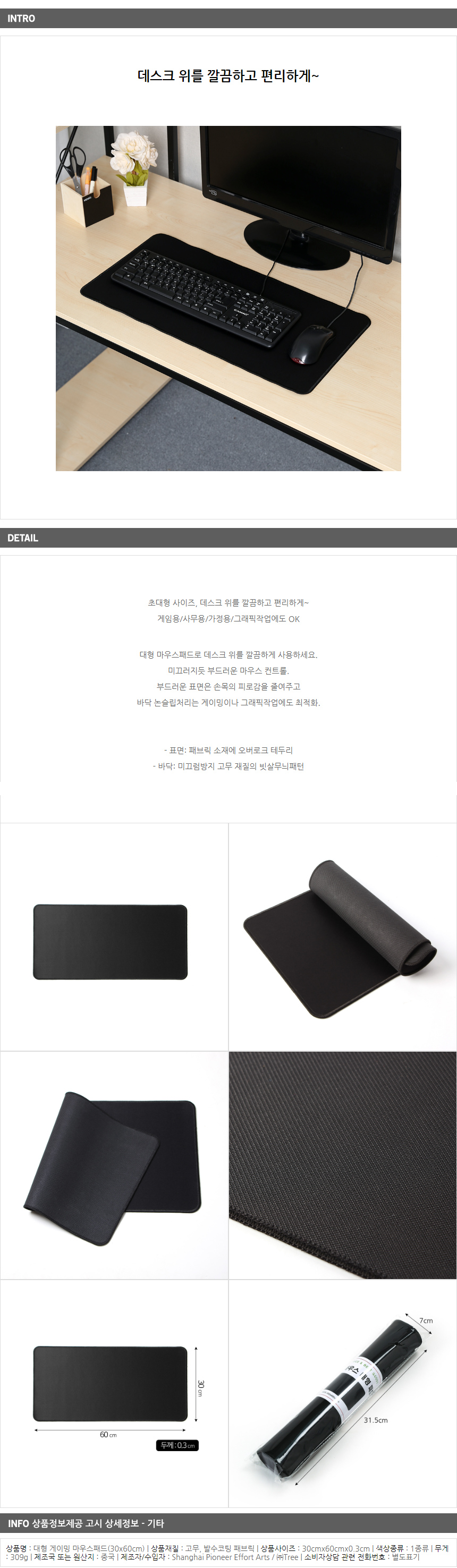대형 게이밍 마우스패드(60x30cm)
