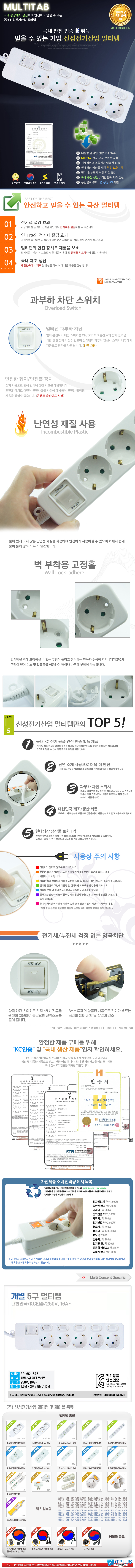 신성전기산업 국산 개별 멀티탭 콘센트 5구 10M(16A) 이미지/