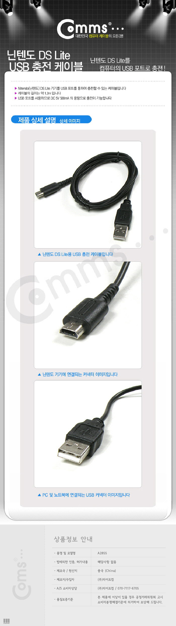 닌텐도 DS Lite USB 충전케이블 1.2m 이미지/