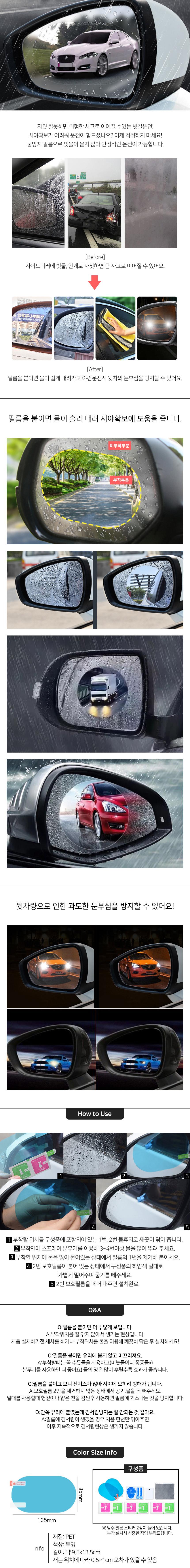 장마철 사이드미러 방수필름 비오는날운전 김서림방지