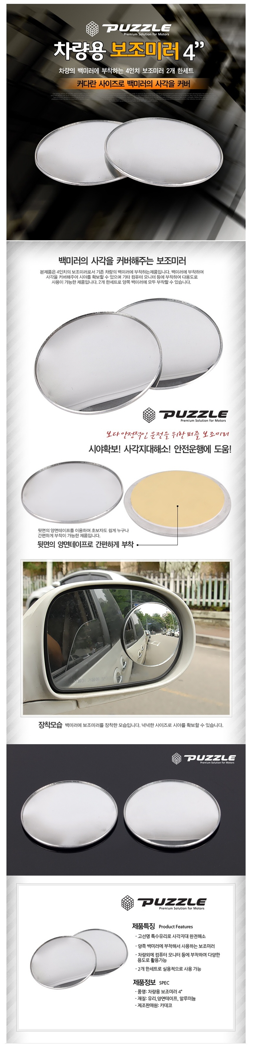초보 운전 차량 주행 보조 접착식 사이드 보조 미러 자동차용품 차량용품 이미지/