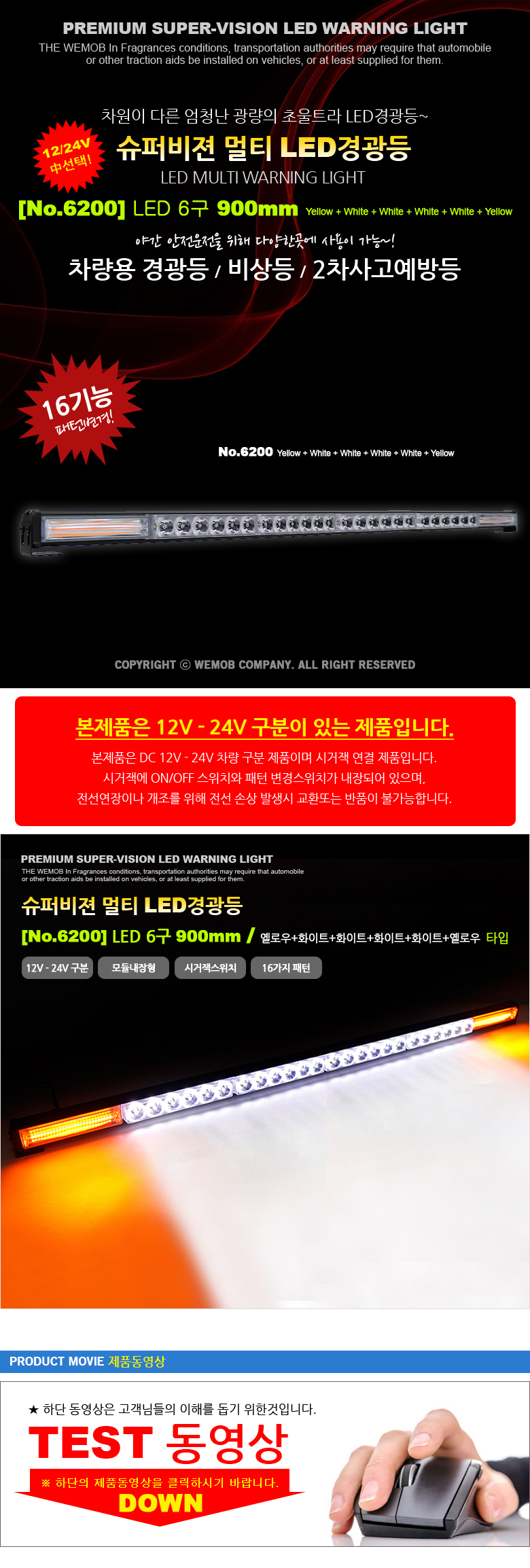 WMB 차량용 LED바 6구 경광등 비상등 사고예방 조명