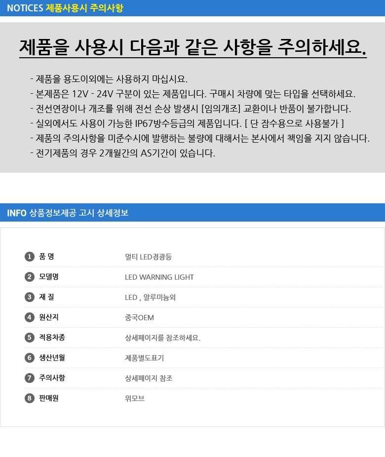 WMB 차량용 LED바 6구 경광등 비상등 사고예방 조명 이미지/