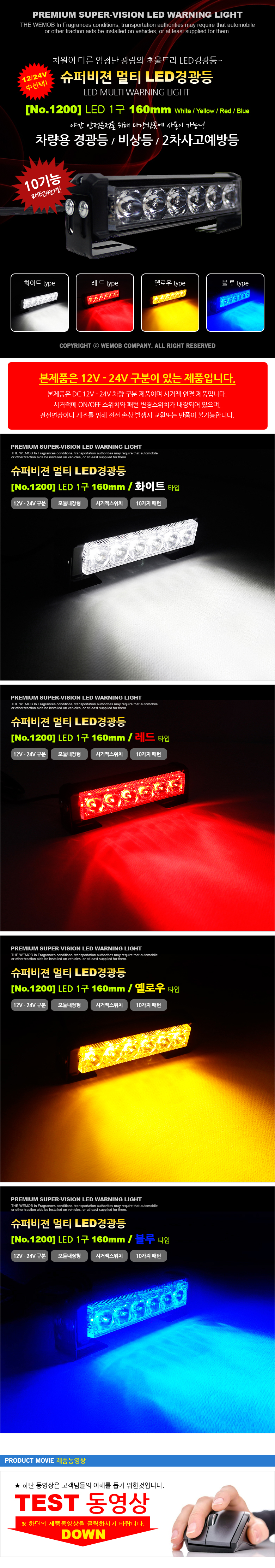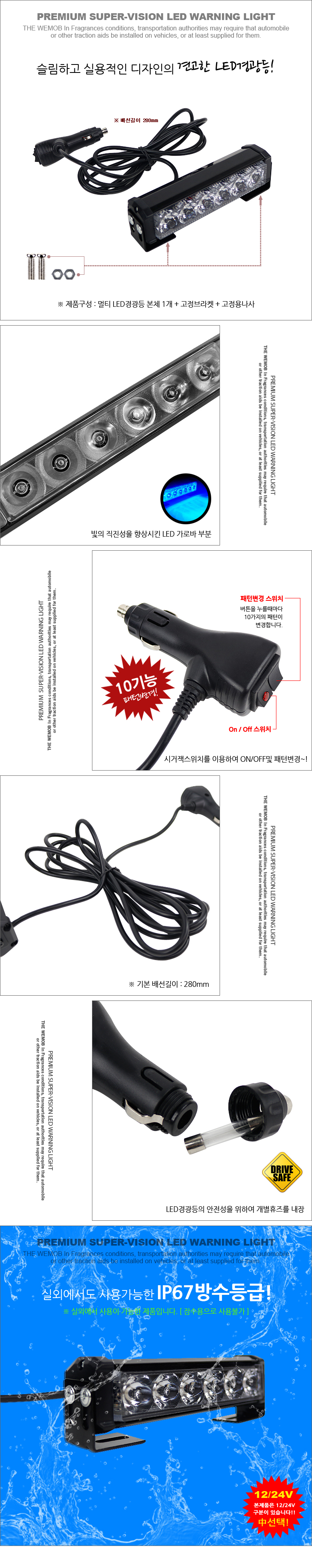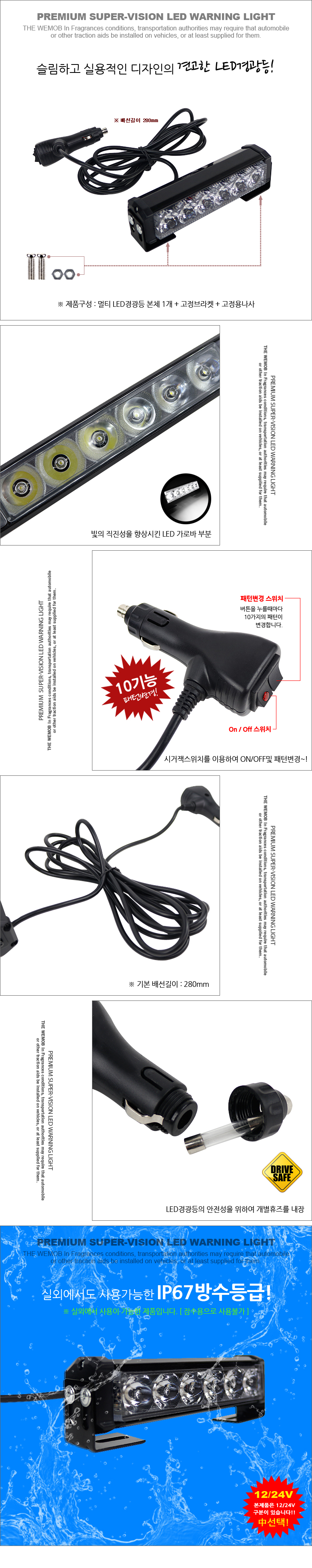 WMB 차량용 LED바 1구 경광등 비상등 사고예방 조명
