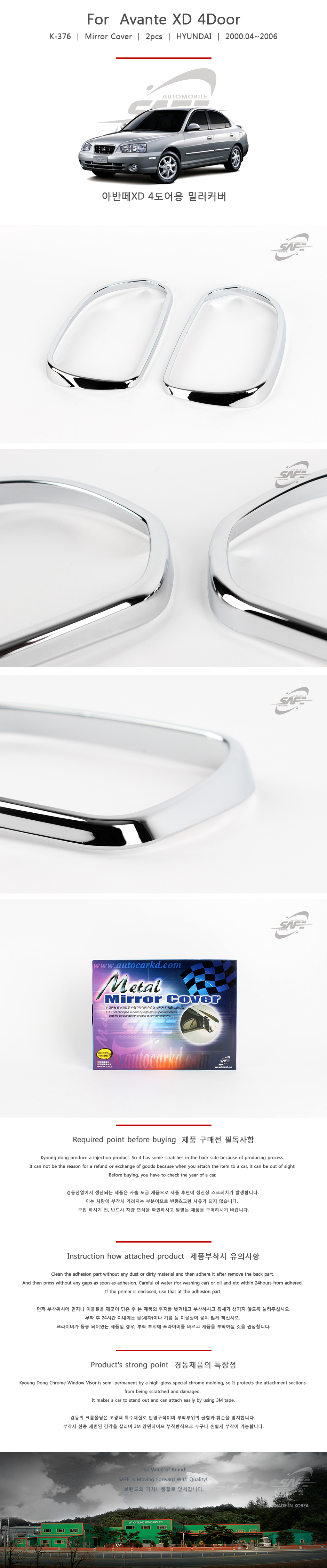 아반떼XD 사이드미러커버 2pcs 4도어 5도어 공용