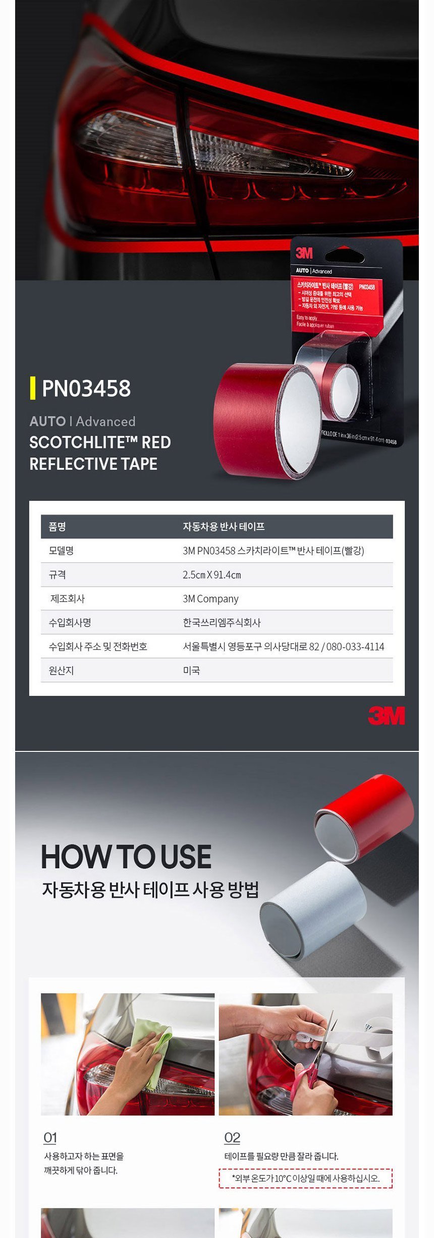 3M 스카치라이트 반사 테이프(빨강) PN03458