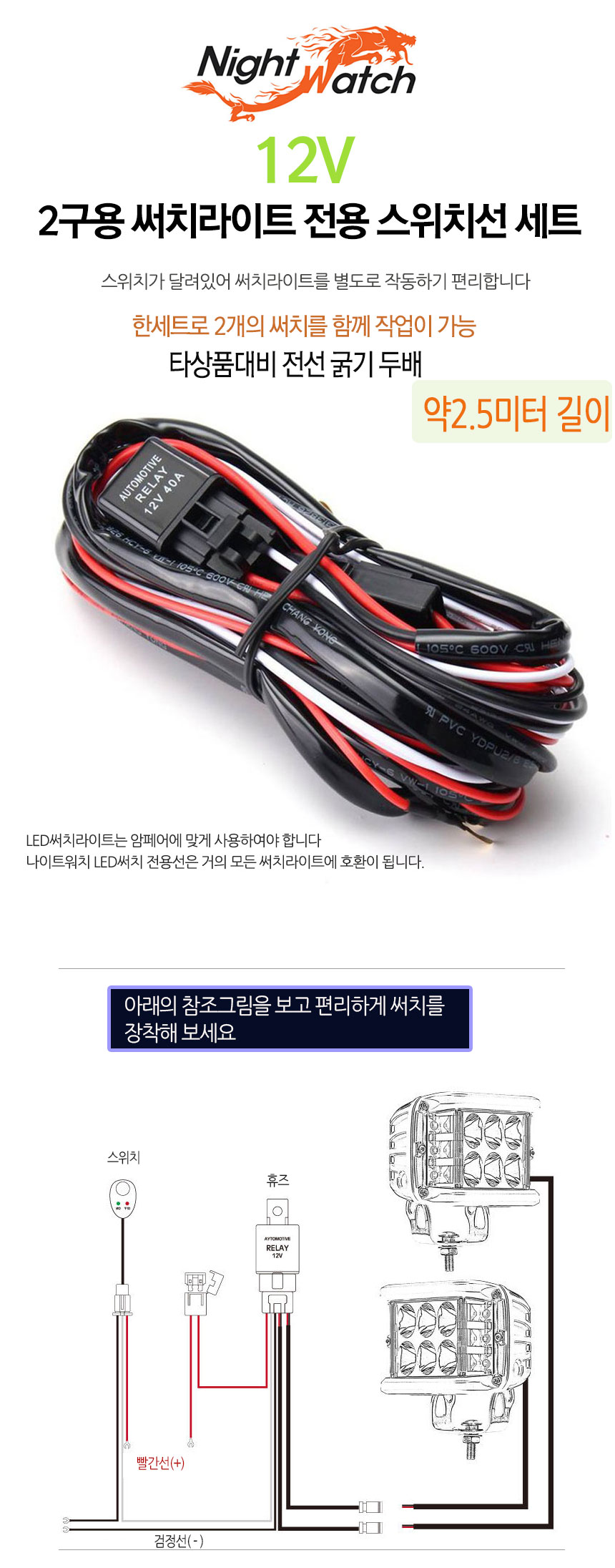 12V 차량용 LED 작업등 스위치 2구 케이블 세트