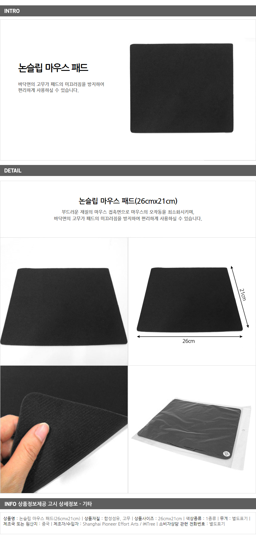 논슬립 마우스패드 (26x21cm)