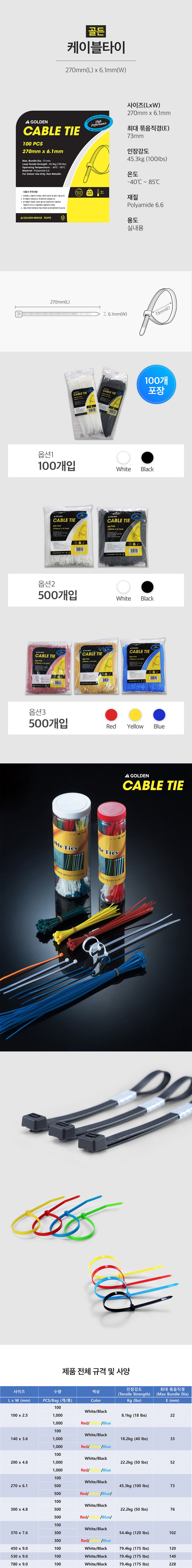 케이블타이 / 270mm / 컬러(흑백적황청) / 1봉(500개입)
