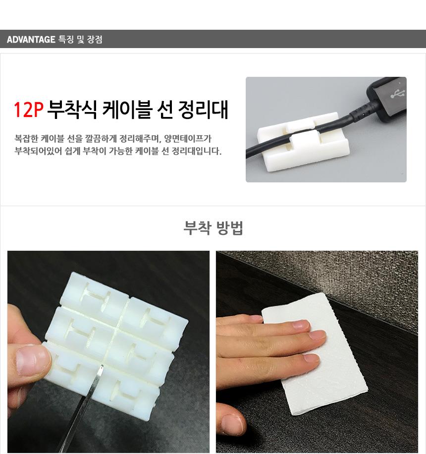 12P 부착식 케이블 선 정리대 pc선정리 랜선정리 이미지/