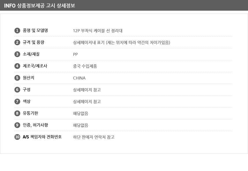 12P 부착식 케이블 선 정리대 pc선정리 랜선정리