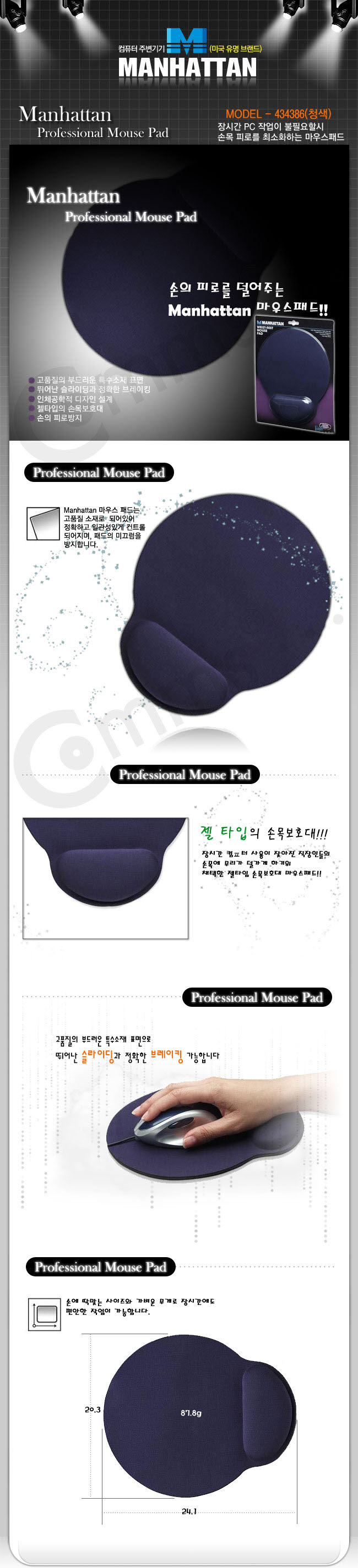 Manhattan 손목보호형 마우스 패드청색 이미지/