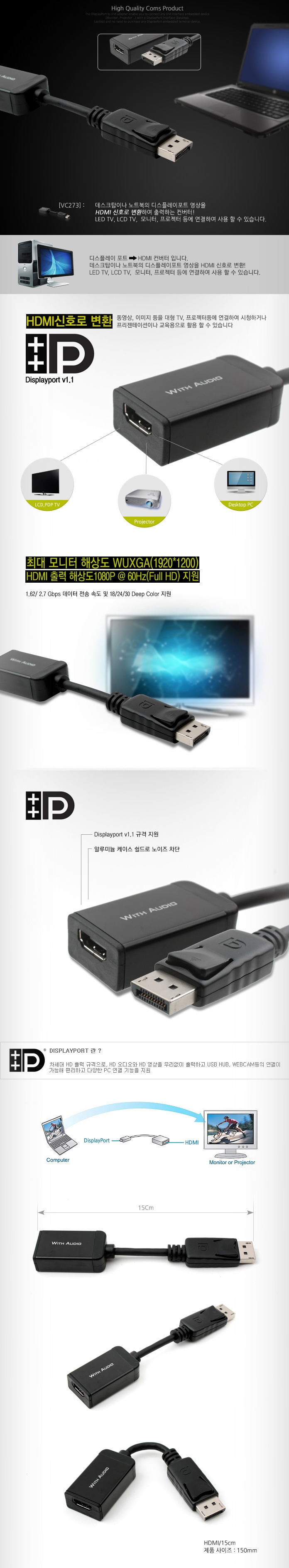 영상장비 Display Port 컨버터 TO HDMI 컨버터/오디오 지원/프리젠테이션/모니 이미지/