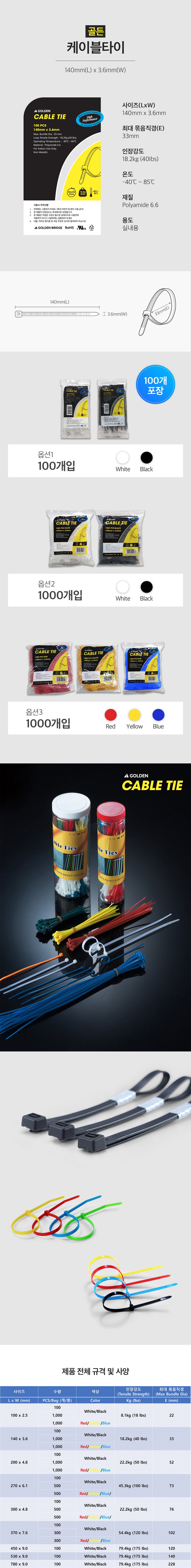 - 케이블타이 규격: 140 x 3.6 mm