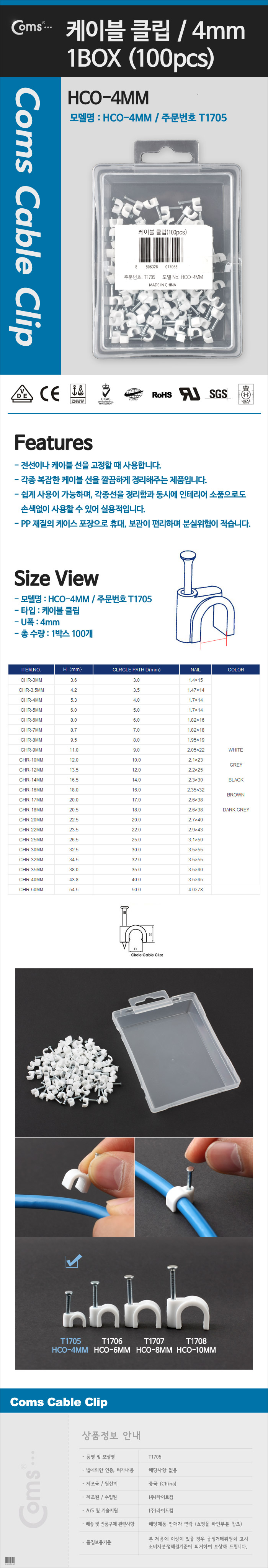 케이블 클립(100pcs)/고정 못형 HCO-4MM BOX 4mm 이미지/