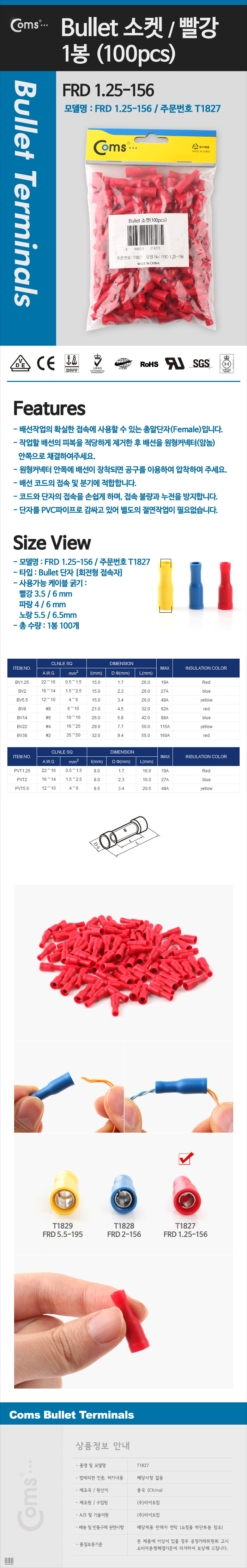 Bullet 소켓(100pcs) FRD 1.25-156 빨강 Female 이미지/